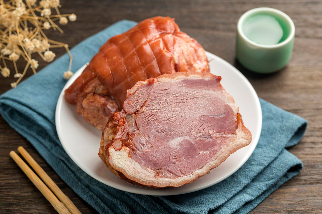 ① 復熱: 將整個豬肘放入蒸鍋中,用小火慢蒸15-20分鐘,直至豬肘完全熱透,用筷子可輕松插入。此步驟能使豬肘更加酥爛,并恢復剛出鍋時的潤澤感;