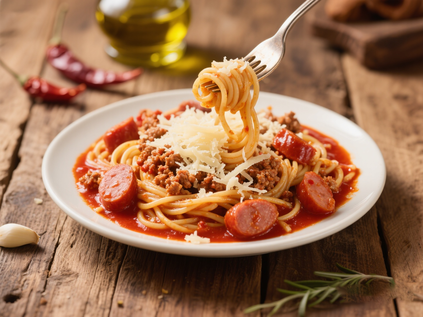 特點: 香腸油脂融入番茄醬汁,辣味激發(fā)肉香
