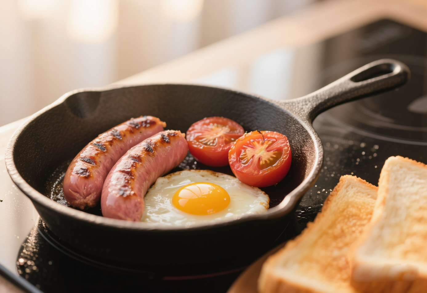 特點(diǎn):充分激發(fā)牛肉腸的焦香風(fēng)味,搭配太陽(yáng)蛋和烤番茄,打造營(yíng)養(yǎng)均衡的經(jīng)典西式早餐。